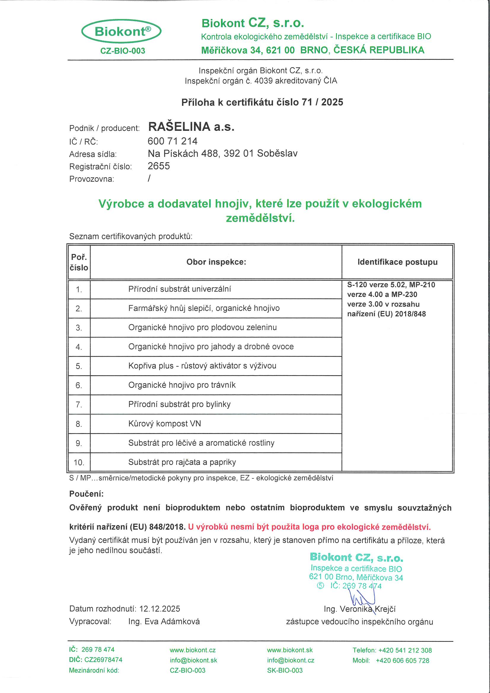 Rašelina a.s. má celou řadu hnojiv od minerálních, kapalných, vodorozpustných až po bio hnojiva.