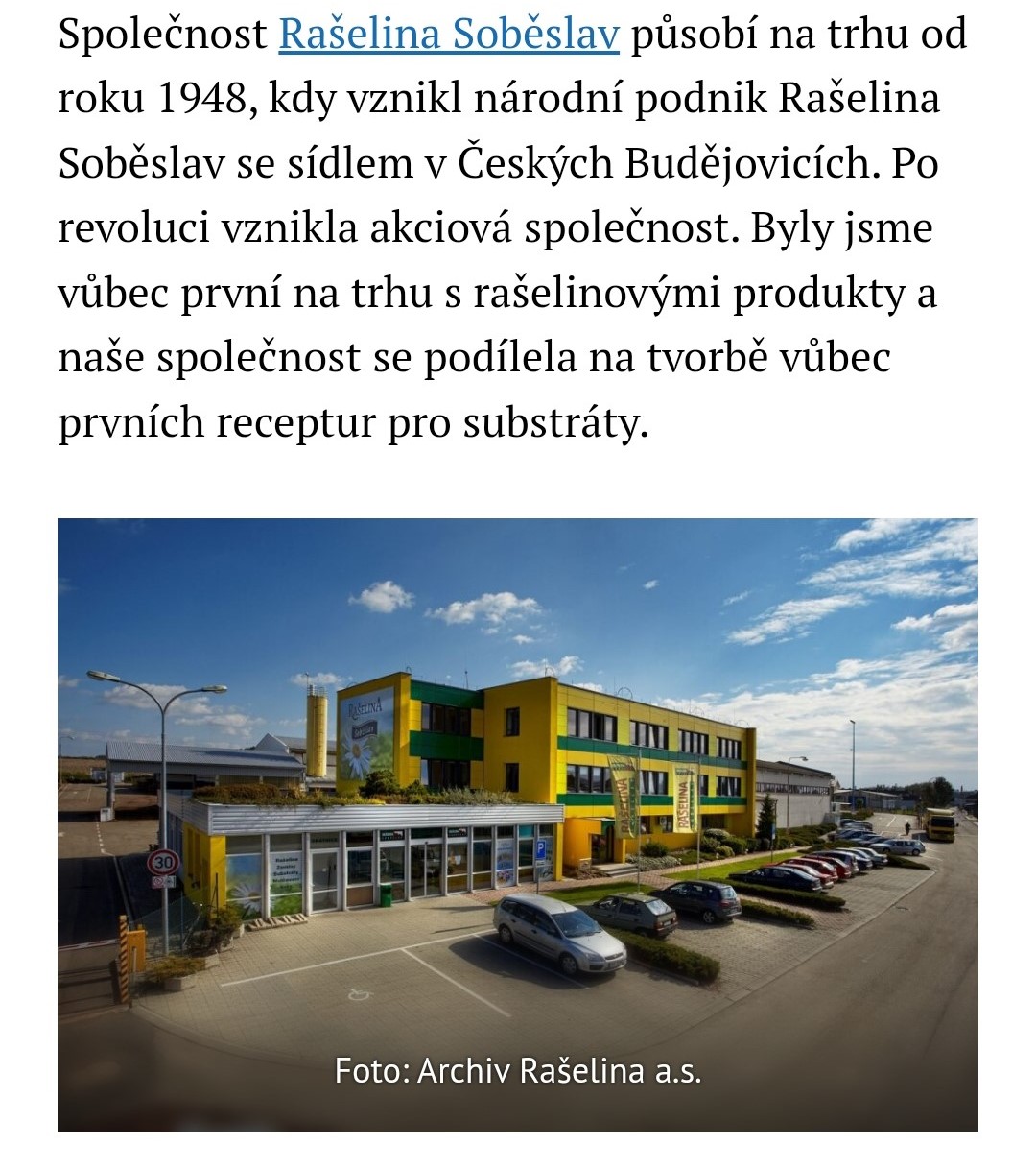 Naše výjimečnost spočívá v tom, že máme vlastní těžební závody, kde těžíme tmavou rašelinu. Ta má specifické vlastnosti a je velmi vhodná pro pěstování. Uvědomujeme si však, že rašelina není obnovitelný zdroj a snažíme se její těžbu v České republice omezovat.
