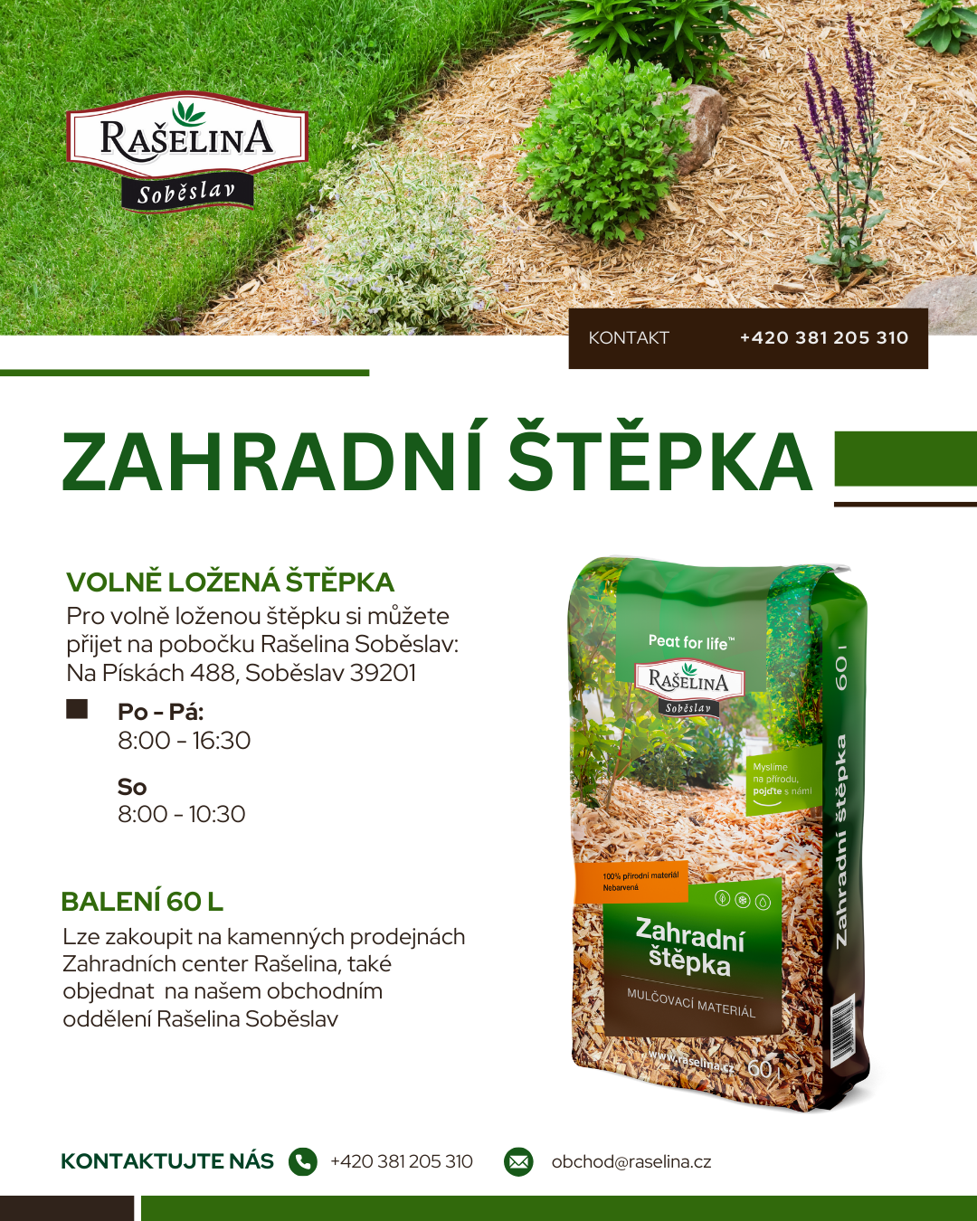 Ideální pro mulčování záhonů, pod keře, stromy nebo na přírodní cestičky.