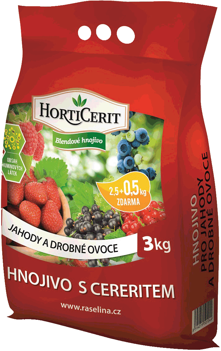 Horticerit – hnojivo pro jahody a drobné ovoce se používá k hnojení před výsadbou rostlin, ale i k přihnojování rostlin během vegetace. Je vhodné pro všechny druhy jahodníků a dalšího drobného ovoce (rybíz, angrešt, maliny, ostružiny a další).