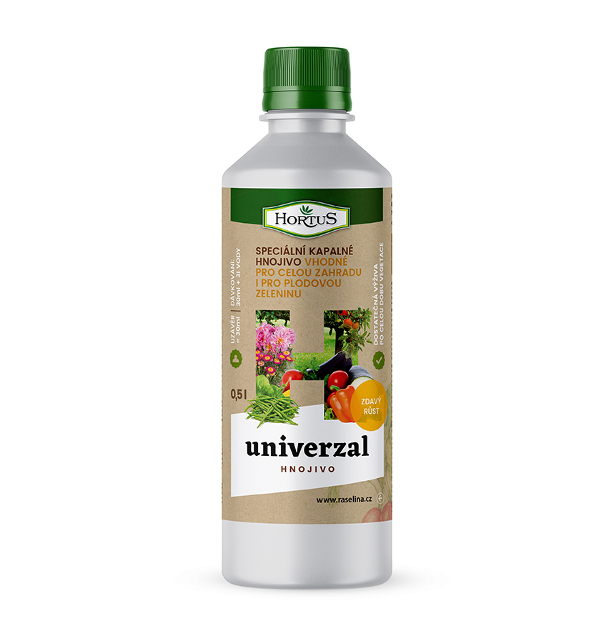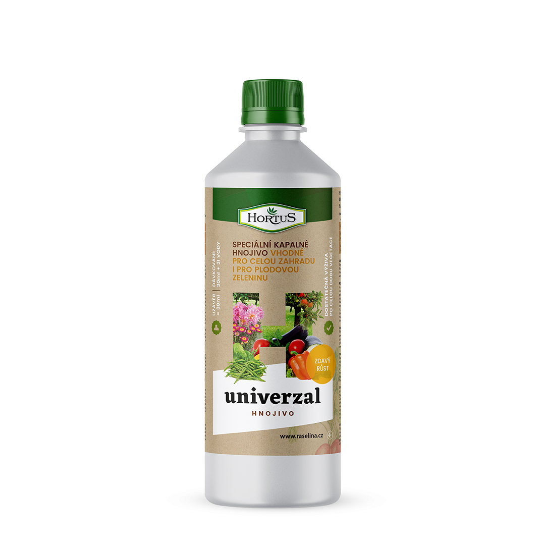 Hnojivo Univerzál obsahuje minerální látky dusík, fosfor a draslík (NPK 7-4,5-5,5). Je to ideální plné hnojivo pro zdravý růst rostlin, bohaté nasazení květů a tvorbu plodů. Složení hnojiva má příznivý účinek na tvorbu vegetativních i generativních částí rostlin a je určeno pro celou škálu rostlin pěstovaných v bytech, balkónech i zahradách. Při dodržení doporučeného dávkování obdrží všechny pěstované rostliny optimální množství živin.