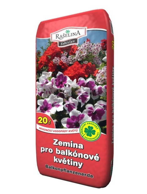 Zemina pro balkónové květiny je připravena pro pěstování muškátů, petúnií, begónií, fuchsií, aksamitníků, verben a dalších balkónových květin s podobnými požadavky. Zemina je vyrobena z kvalitní tříděné rašeliny s přídavkem minerálních hnojiv a vápenaté složky.