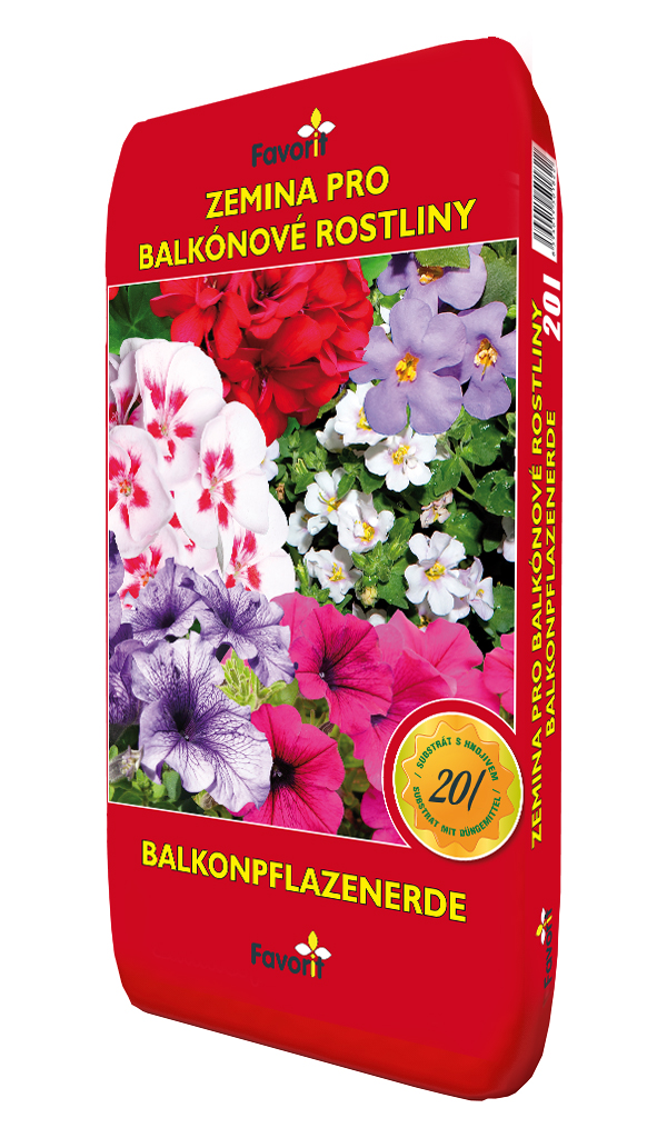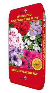 Zemina pro balkónové květiny je připravena pro pěstování muškátů, petúnií, begónií, fuchsií, aksamitníků, verben a dalších balkónových květin s podobnými požadavky. Zemina je vyrobena z kvalitní tříděné rašeliny s přídavkem minerálních hnojiv a vápenaté složky.