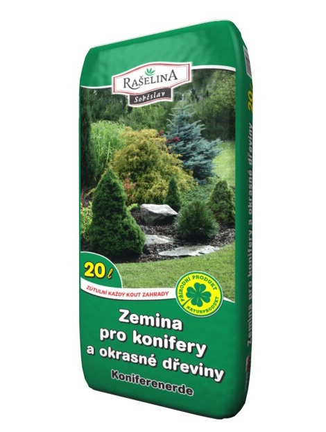 Zemina pro konifery je určena k pěstování jehličnatých okrasných dřevin, případně i jiných kyselomilných rostlin. Zemina je vyrobena ze směsi kvalitních rašelin, dobře vyzrálého jemně tříděného kůrového kompostu, jílovité složky, minerálního vícesložkového hnojiva se stopovými prvky a jemně mletého dolomitického vápence.